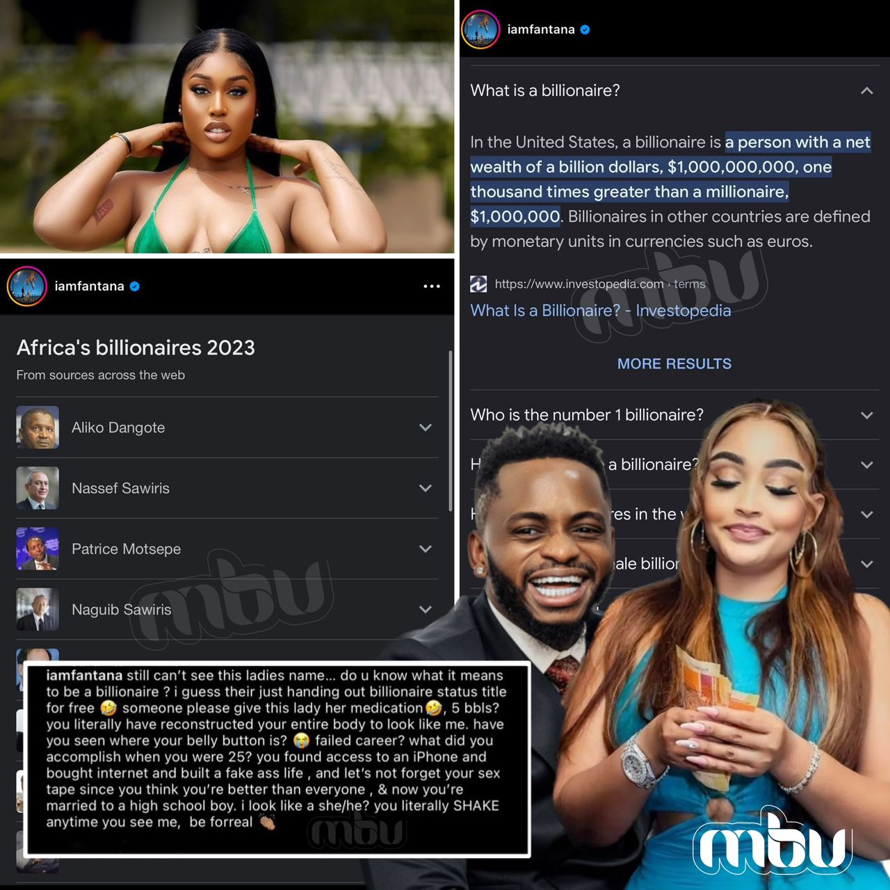 Zari has never been listed among Africa’s billionaires something that left Fantana questioning her mental health as she wrote saying that Zari has often reconstructed her entire body just to look like her because she is so much scared of her.