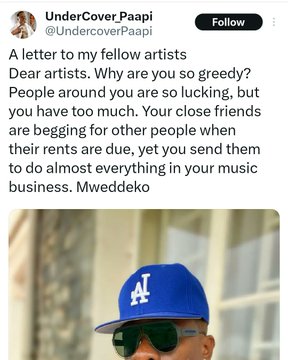Through his Twitter platform, Undercover Papi sent a letter to the artists and accused them of being greedy.