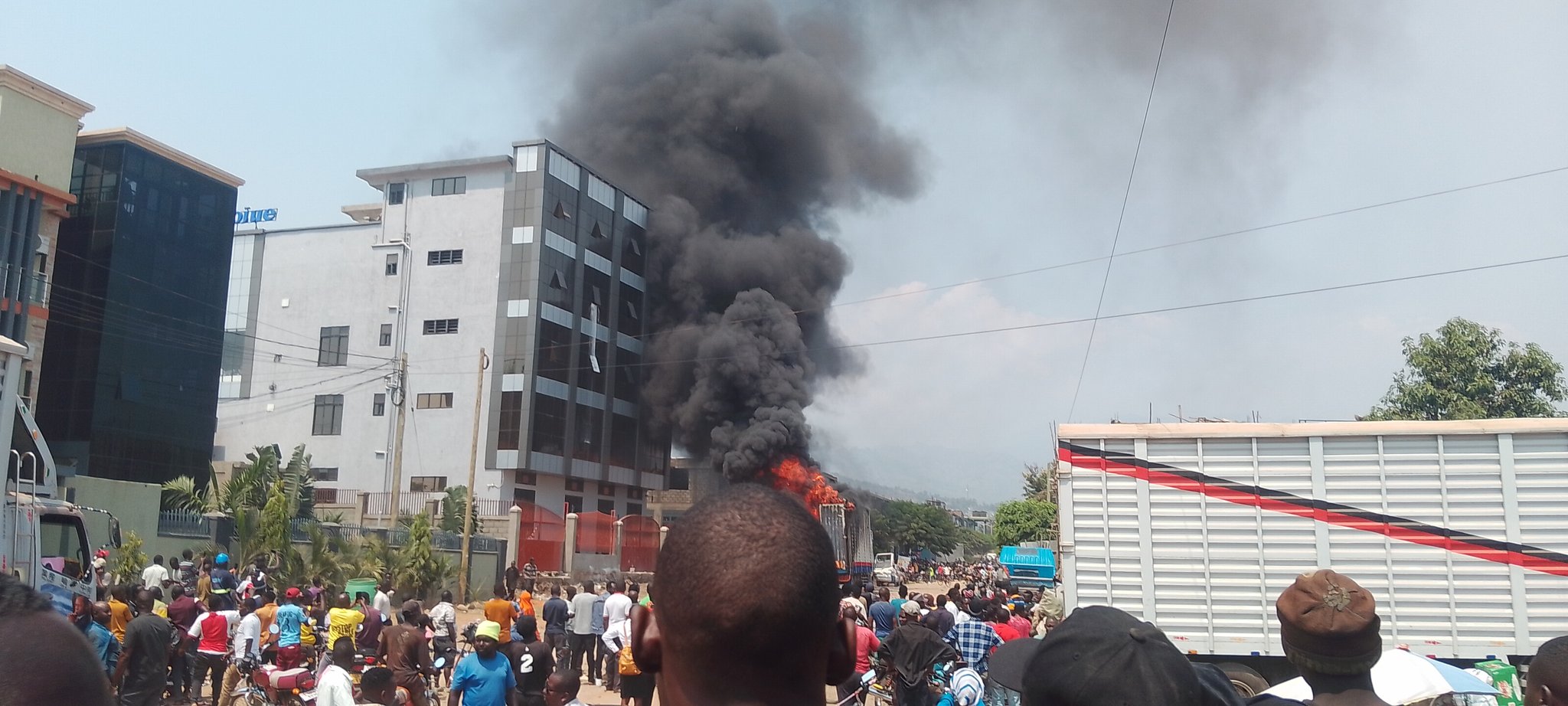 Eyewitnesses described scenes of panic as thick smoke billowed into the air, attracting residents, traders and passersby who gathered in disbelief as the blaze consumed the van. By the time firefighters and security personnel intervened, the vehicle had already suffered extensive damage.