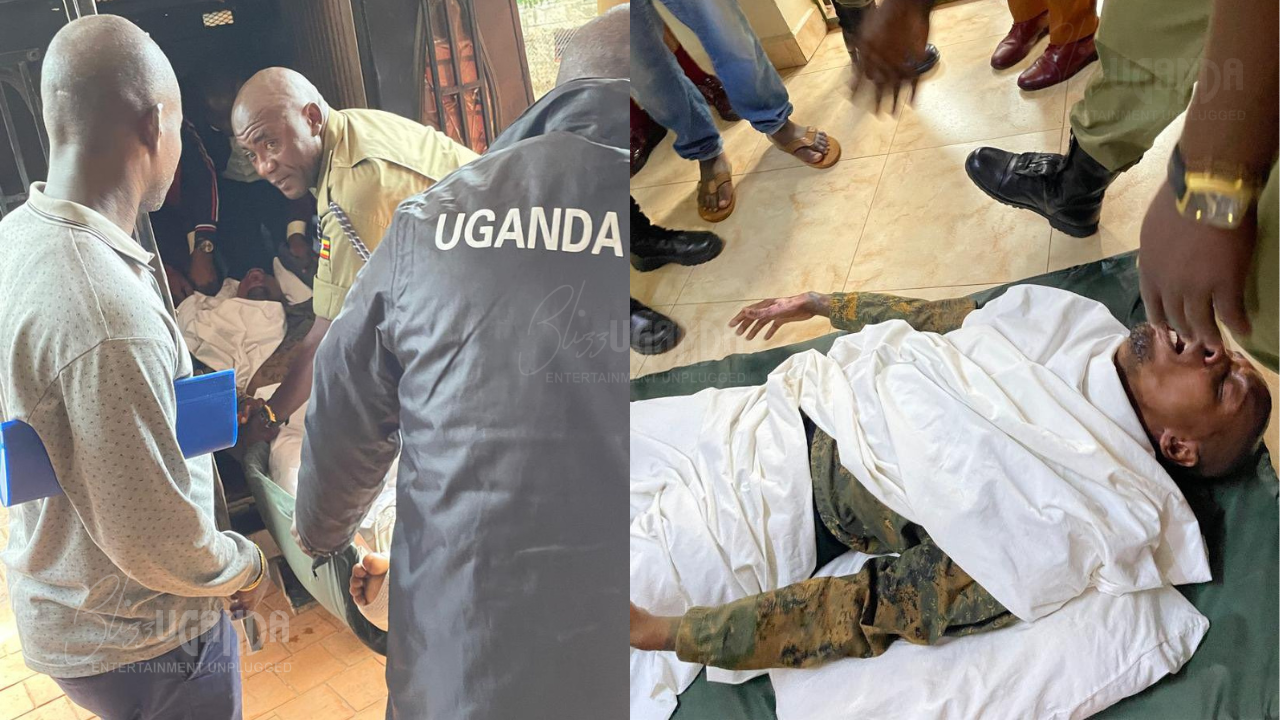 Drama filled Makindye Chief Magistrate’s Court this morning after socialite Bryan White, real name Brian Kirumira, was brought into the courtroom on a stretcher, looking extremely weak and in unbearable pain to be charged with cases including Human Sacrifice.
