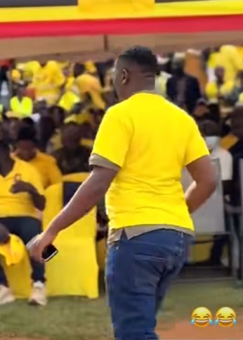 Wearing a yellow NRM T-shirt, Mirundi Jr attempted to force his way closer to the President, apparently hoping to speak to him directly. Witnesses say he appeared confident that he would be recognised, citing his late father, Tamale Mirundi, who served as a presidential adviser before his death.