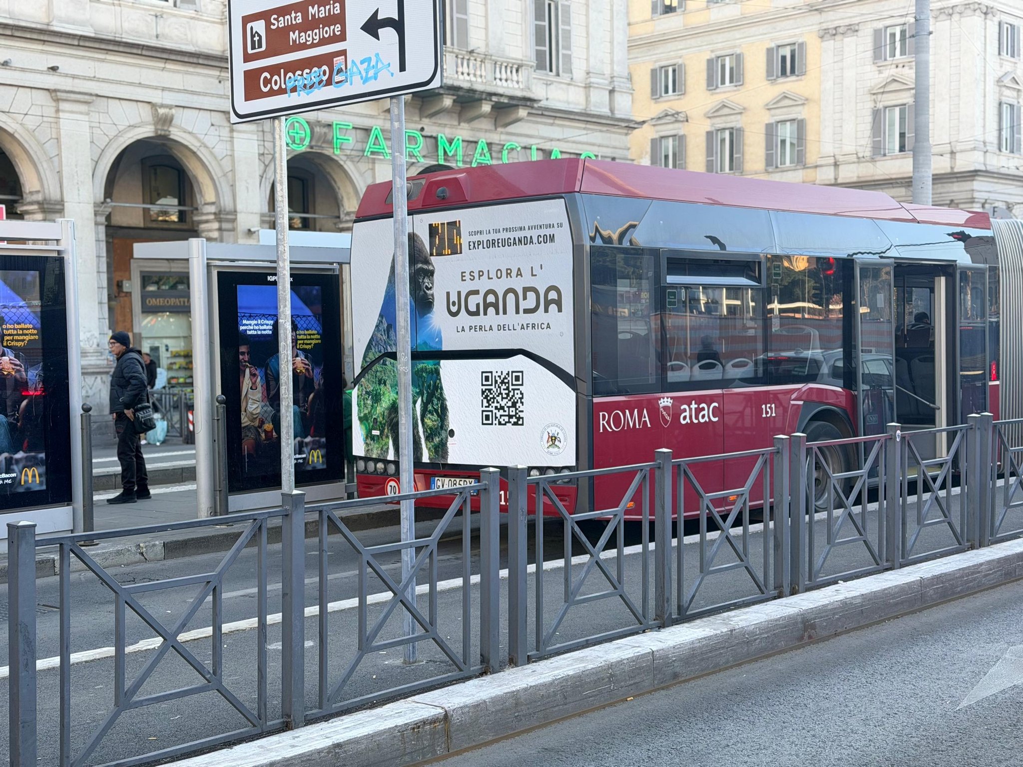 These ads are, eye-catching images of Uganda’s wildlife, landscapes and natural beauty plastered on buses moving through iconic spots like the Colosseum and Roman Forum.